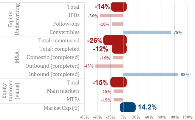 The report provides an update on the performance of the equity market in Europe in areas such as primary issuance, Mergers and Acquisitions (M&A), trading, and equity valuations.