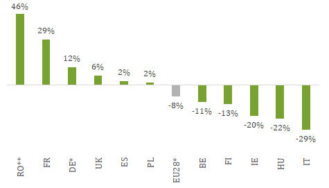 (2Q17 vs 2Q16) Selected European jurisdictions