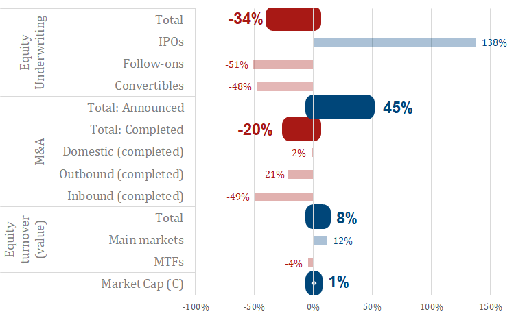 The report provides an update on the performance of the equity market in Europe in areas such as primary issuance, Mergers and Acquisitions (M&A), trading, and valuations.