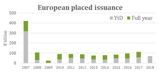 - In Q2 2018, PanEuropean CLOs led placed totals followed by UK RMBS and German Auto ABS.