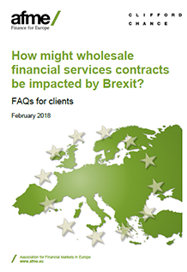 AFME has published a guide “How might wholesale financial services contracts be impacted by Brexit?: FAQs for Clients”. This guide, published in conjunction with Clifford Chance, is part of our ongoing work to provide insight on issues arising out of the UK’s withdrawal from the EU.