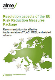 The Association for Financial Markets in Europe (AFME) welcomes the Commission’s proposals to amend the Capital Requirements Regulation (CRR), Capital Requirements Directive (CRD), Bank Recovery and Resolution Directive (BRRD) and Single Resolution Mechanism Regulation (SRMR). This paper sets out our initial views on the resolution aspects of the proposals including the implementation of Total Loss-Absorbing Capacity (TLAC), as set out in the FSB TLAC Principles and Term Sheet (TLAC Standard), amendments to the Minimum Requirement for own funds and Eligible Liabilities (MREL), the proposal to amend the creditor hierarchy and other recovery and resolution issues.