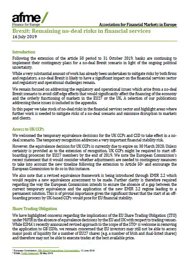 We remain focused on addressing the regulatory and operational issues which arise from a no-deal Brexit scenario to avoid cliff edge effects that would significantly affect the financing of the economy and the orderly functioning of markets in the EU27 or the UK. A selection of our publications addressing these issues is included in the appendix.
