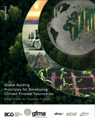The “Global Guiding Principles for Developing Climate Finance Taxonomies – A Key Enabler for Transition Finance” is a follow-up to one of the recommendations in GFMA/BCG report from December 2020, Climate Finance Markets and the Real Economy, Sizing the Global Need and Defining Market Structure to Mobilize Capital. Similarly, the scope of this paper is limited to Climate Finance taxonomies and does not cover broader environmental, social, and governance (ESG) taxonomies. Climate Finance taxonomies help enable financing, providing guidelines for investors and credit institutions on how “climate-aligned” a given corporate is at the entity level, or the alignment of specific activities undertaken by an entity to science-based pathways. Taxonomies should not be used as proxy for physical, transitional, or prudential risk assessment of financial institutions. A taxonomy captures only a snapshot of a corporate’s activities; therefore, to comprehensively understand a corporate through the lens of Climate Finance, a taxonomy should be used in conjunction with forward-looking decision-relevant metrics, enabled by mandatory disclosures.